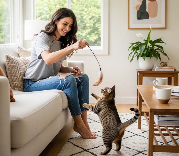 Cats require playtime and physical exercise to help keep them healthy and happy. By providing daily mental and physical stimulation, you’re giving your cat a chance to release energy, reduce boredom and anxiety, maintain a healthy weight, and help keep unwanted behaviors at bay. A cat’s breed, age, and personality can all influence how much exercise and playtime is needed.3 Ask your vet for recommendations.